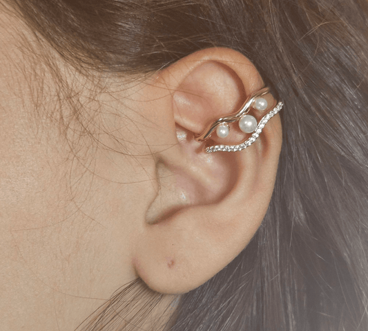 18K Gold Plated or Silver Plated Ear Cuff with Pearls and Cubic Zirconia Stones Adjustable - One Piece