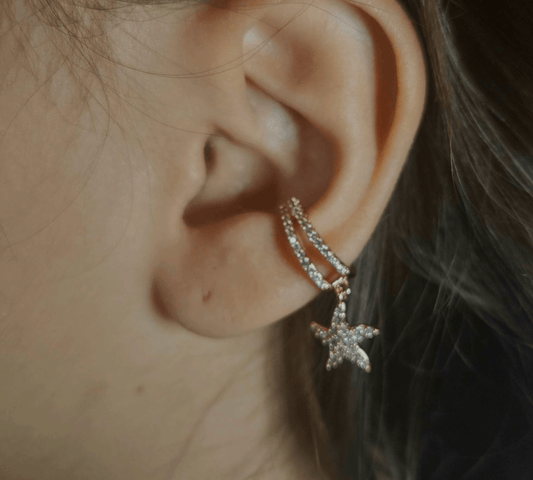 18K Gold Plated Ear Cuff with Pearls and Cubic Zirconia Stones Adjustable - One Piece