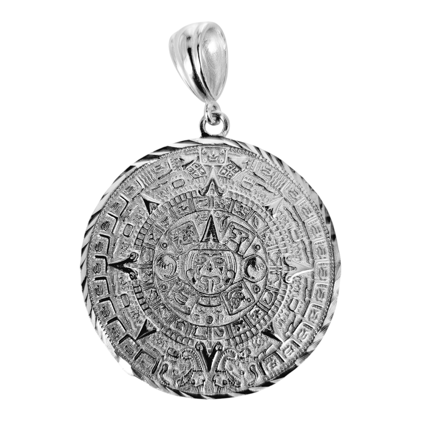 Este colgante de plata 925 con calendario azteca presenta un dije de sol maya con un calendario azteca muy detallado. Hecho de plata 925 de alta calidad, este colgante es elegante y atemporal. Perfecto para cualquier entusiasta de la historia o amante de las joyas únicas. Agregue esta pieza a su colección hoy.