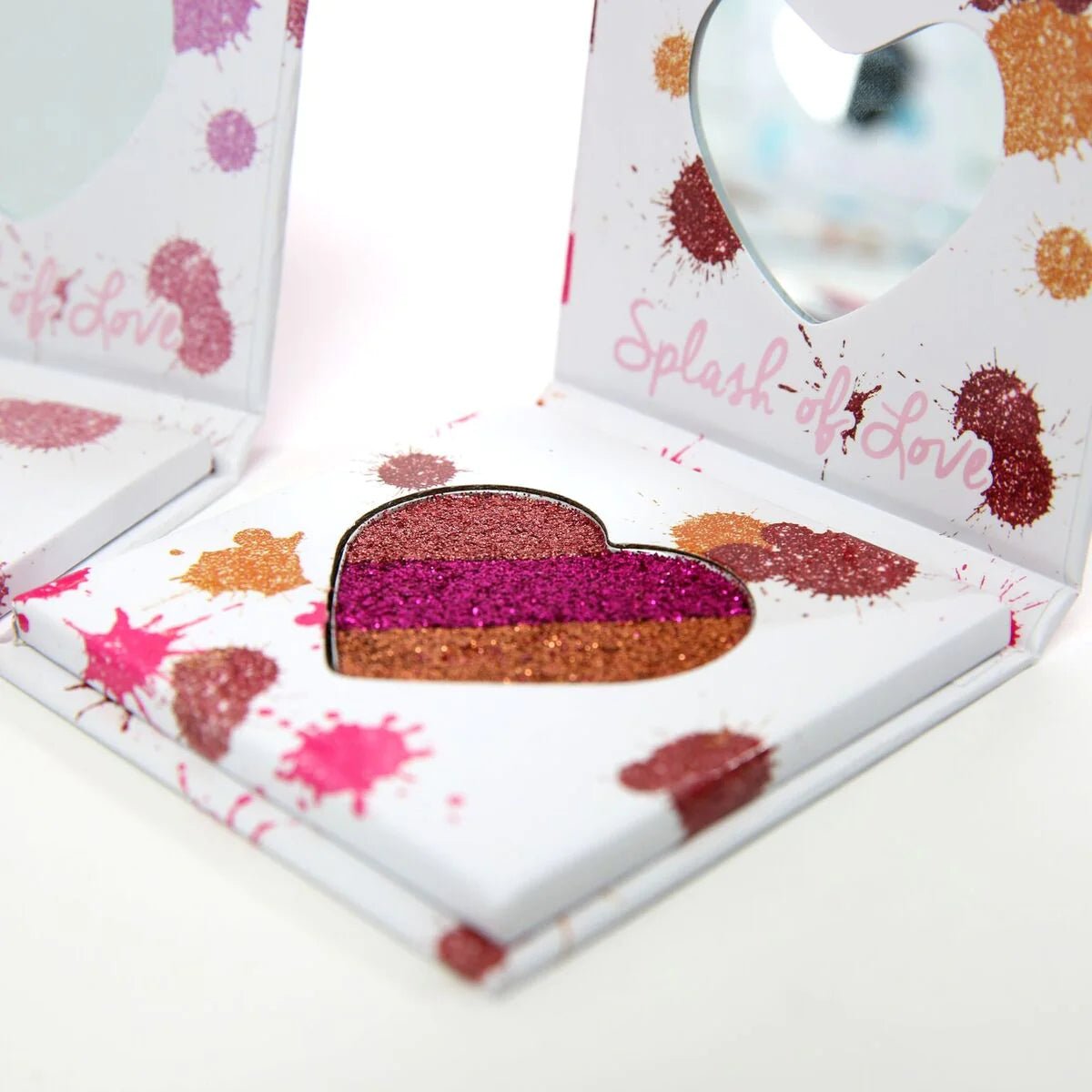 Splash of Love es uno de los cuatro brillos compactos prensados diferentes. Suave, cremoso y pigmentado facilita la aplicación. No se cae y brilla intensamente.