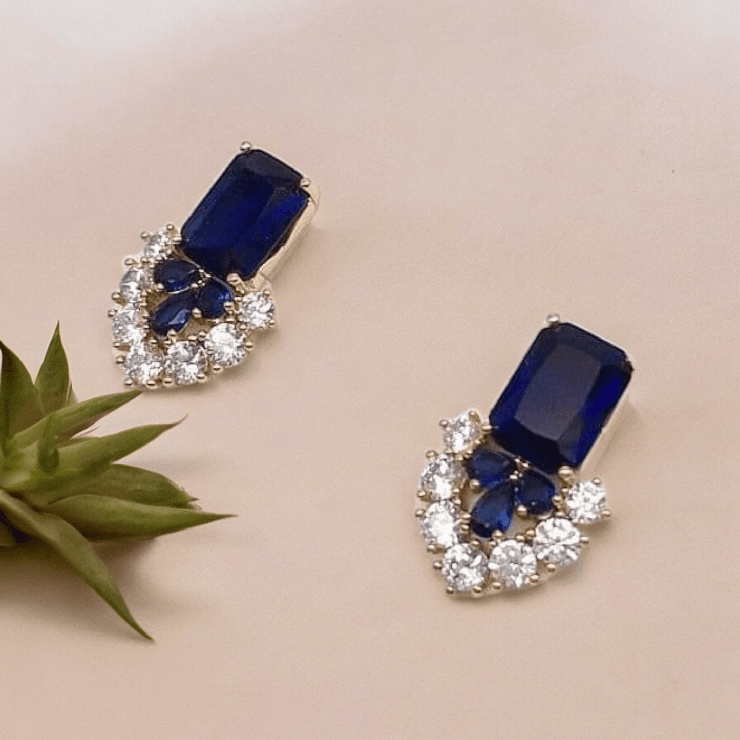 Pendientes de moda chapados en oro de 18 k con piedra de color tanzanita azul
