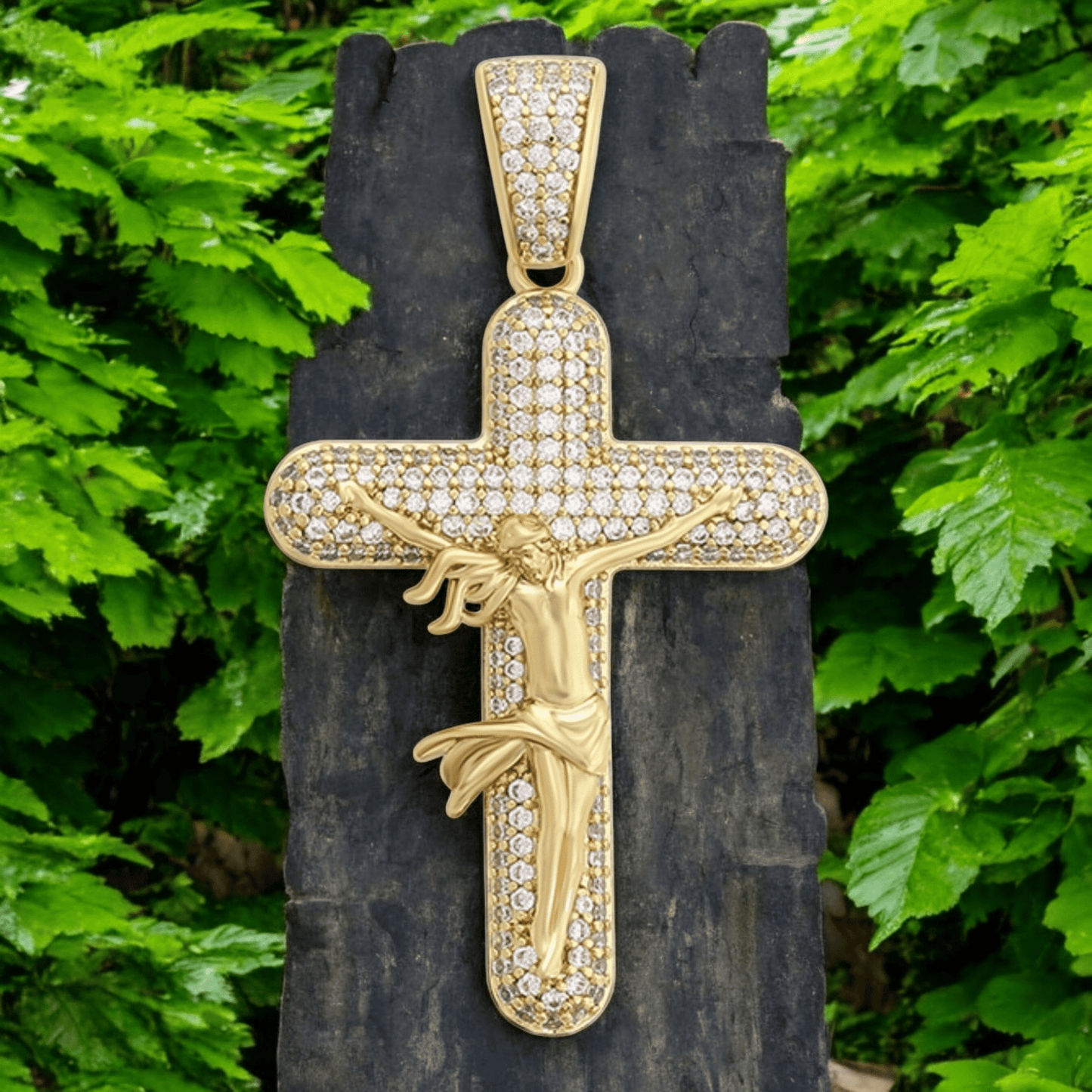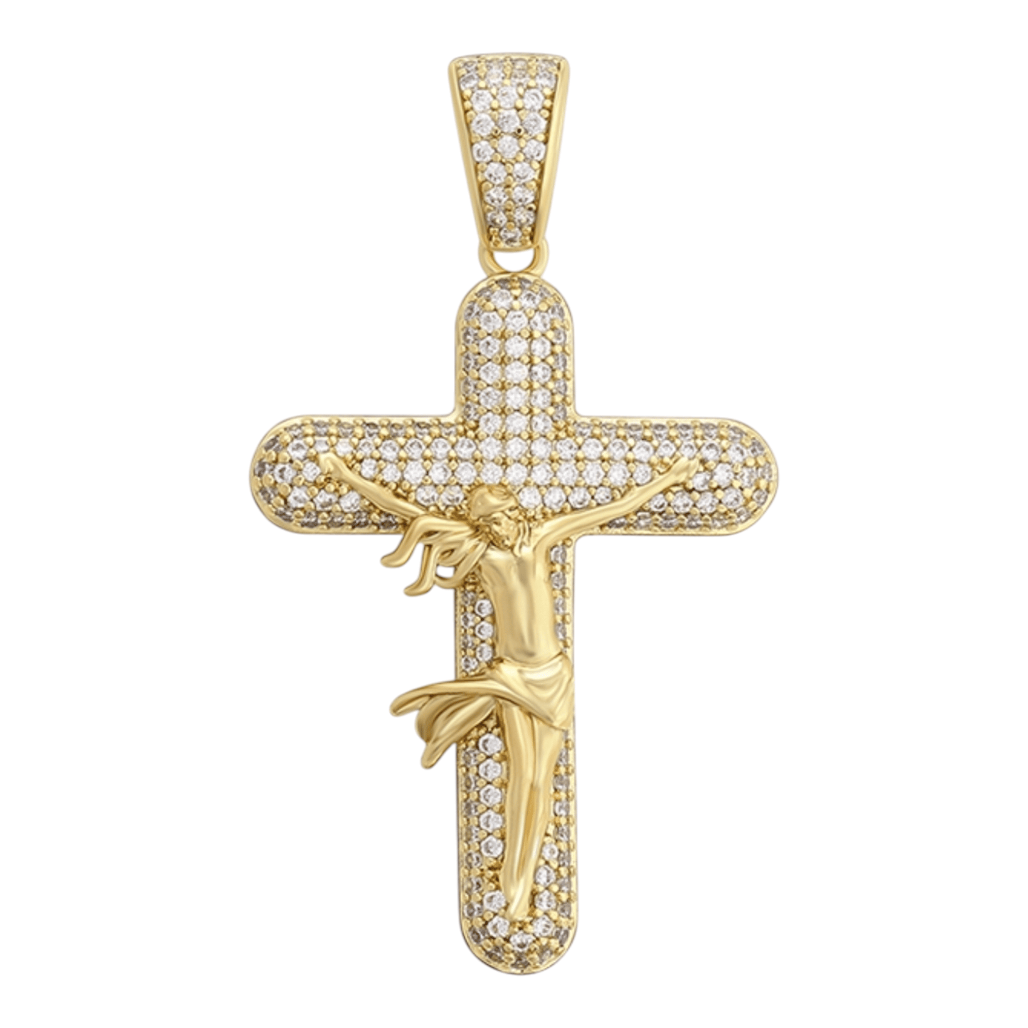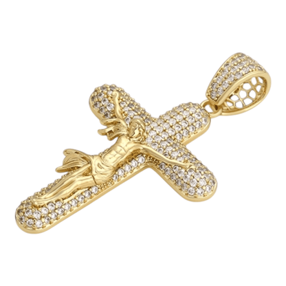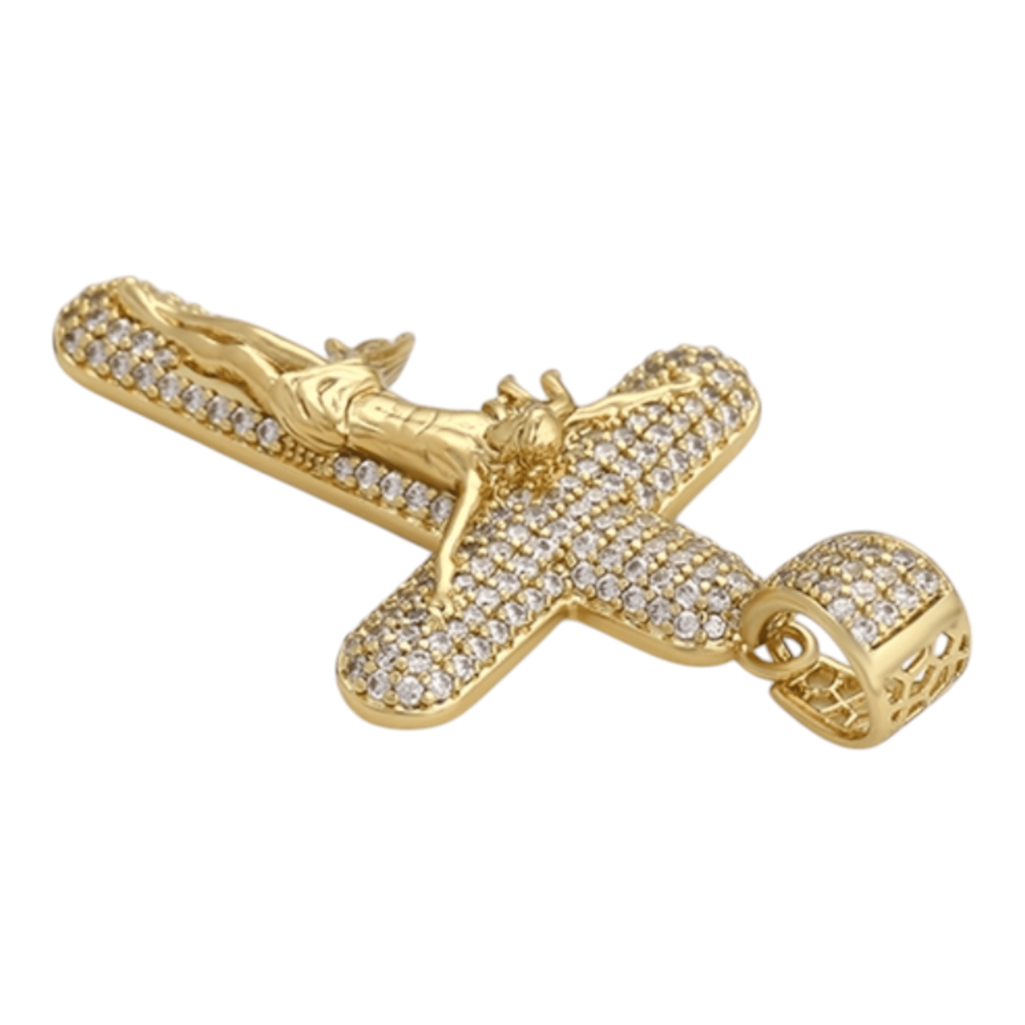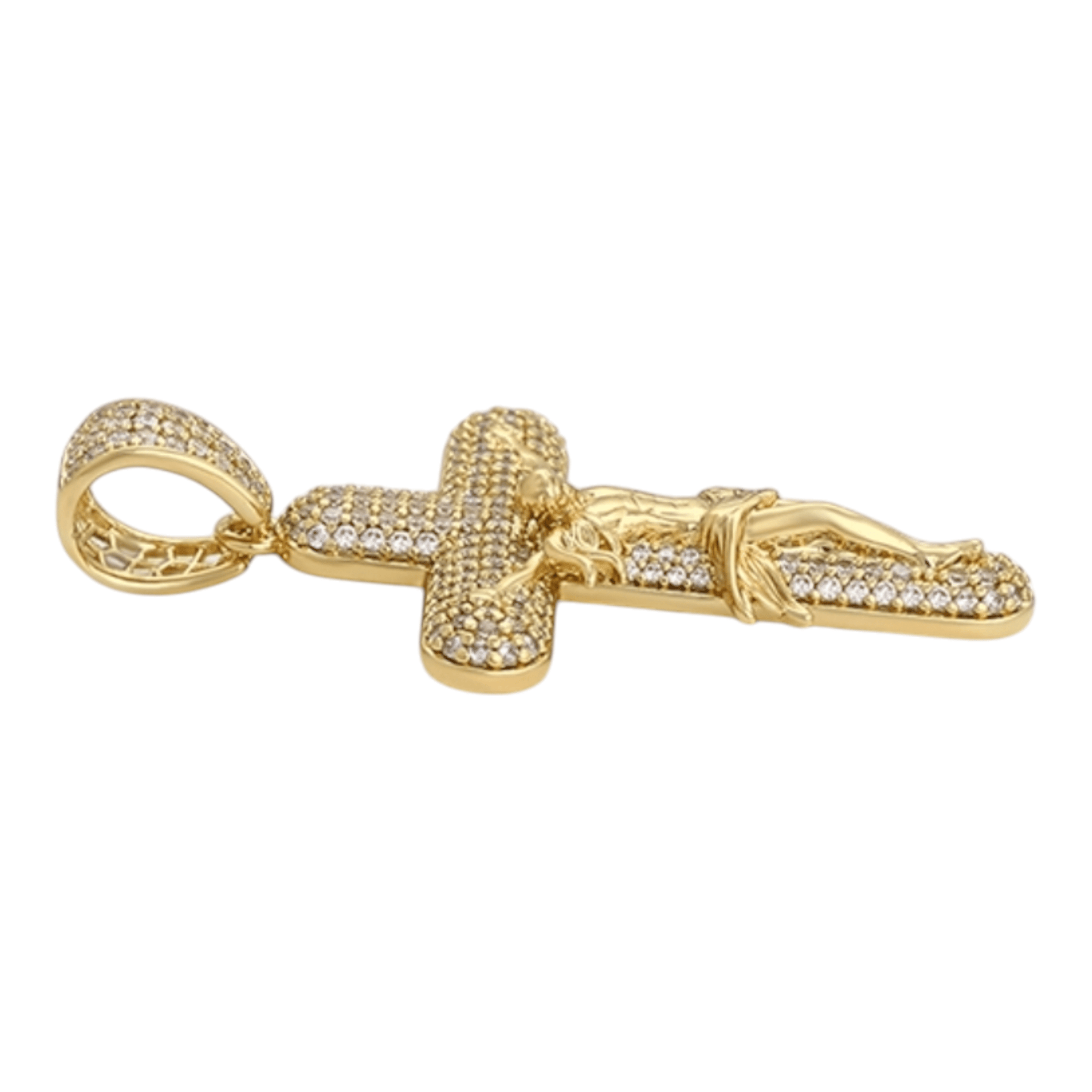 Colgante de cruz de Jesús bañado en oro de 14 quilates