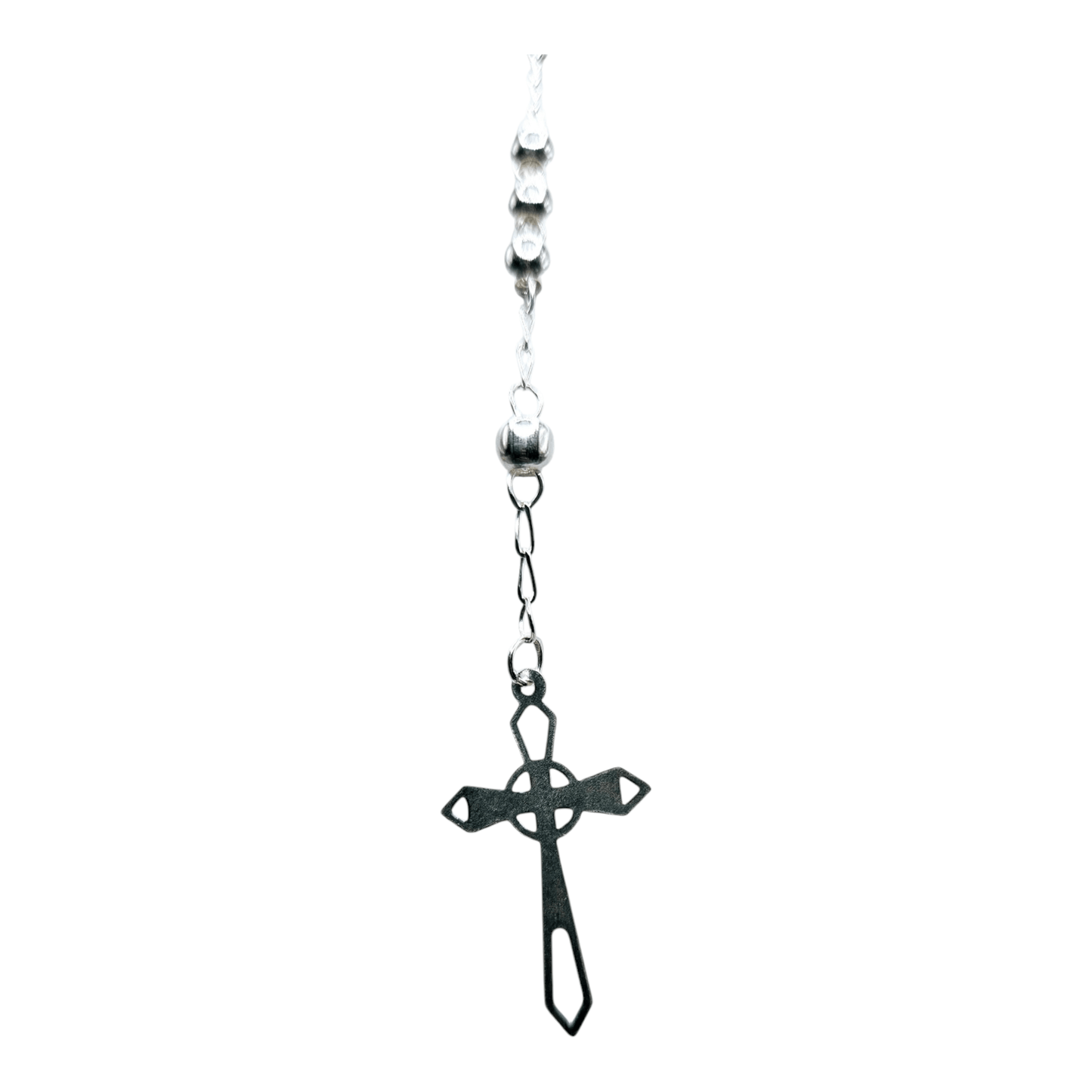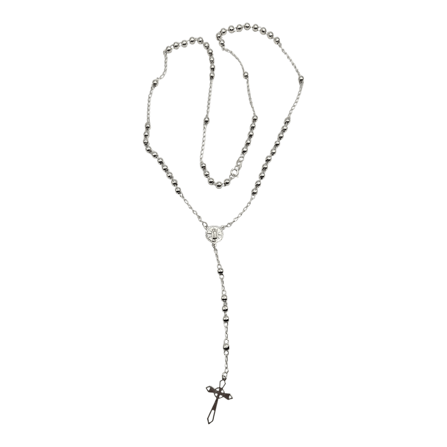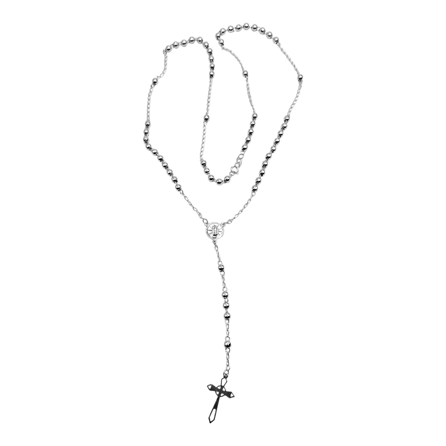 Este collar de cuentas de rosario, elaborado por expertos en plata 925, presenta un hermoso colgante de la Virgen María y una cruz. El accesorio perfecto para cualquier ocasión, ofrece estilo y significado espiritual. Hecho para durar, su material de plata brinda un aspecto atemporal y elegante.