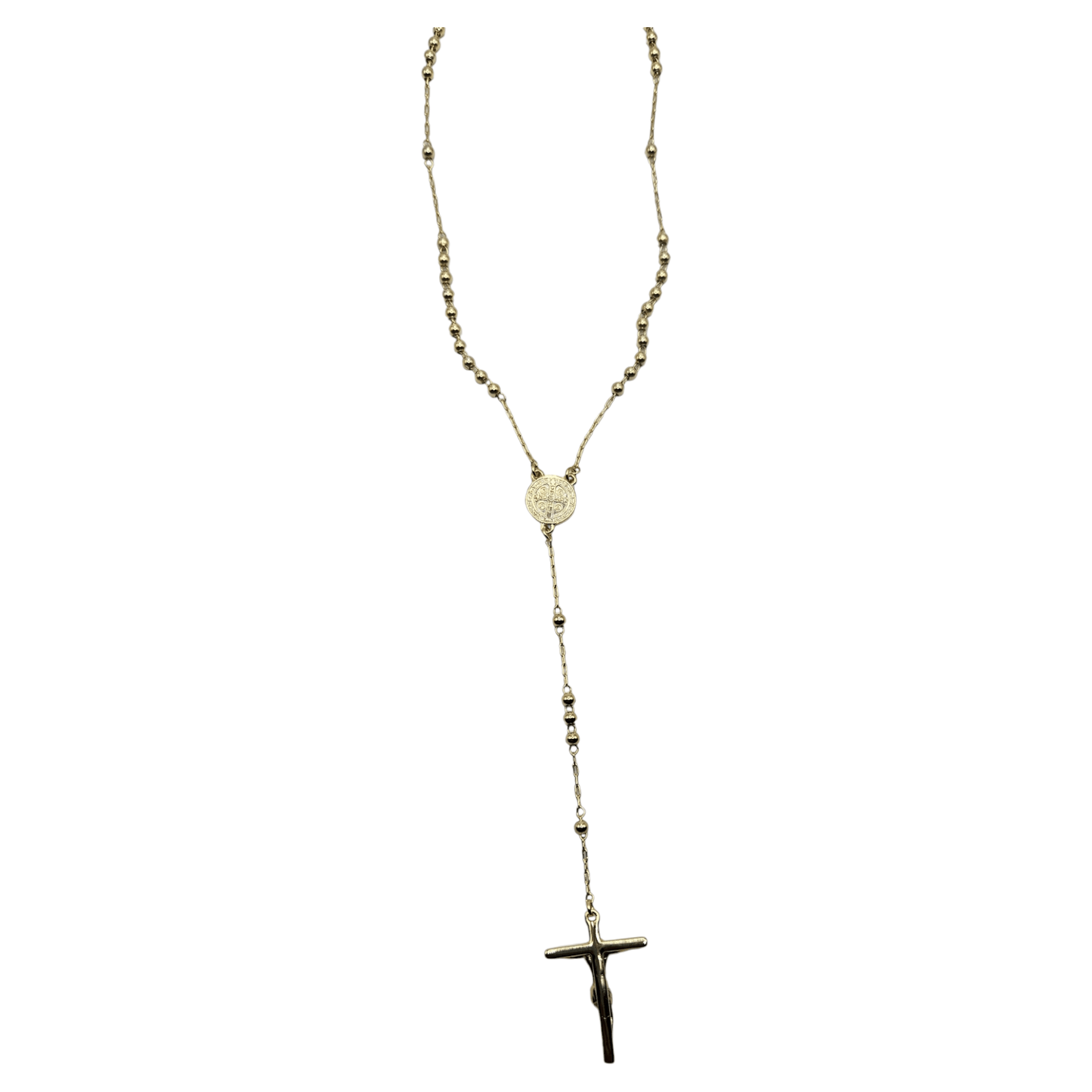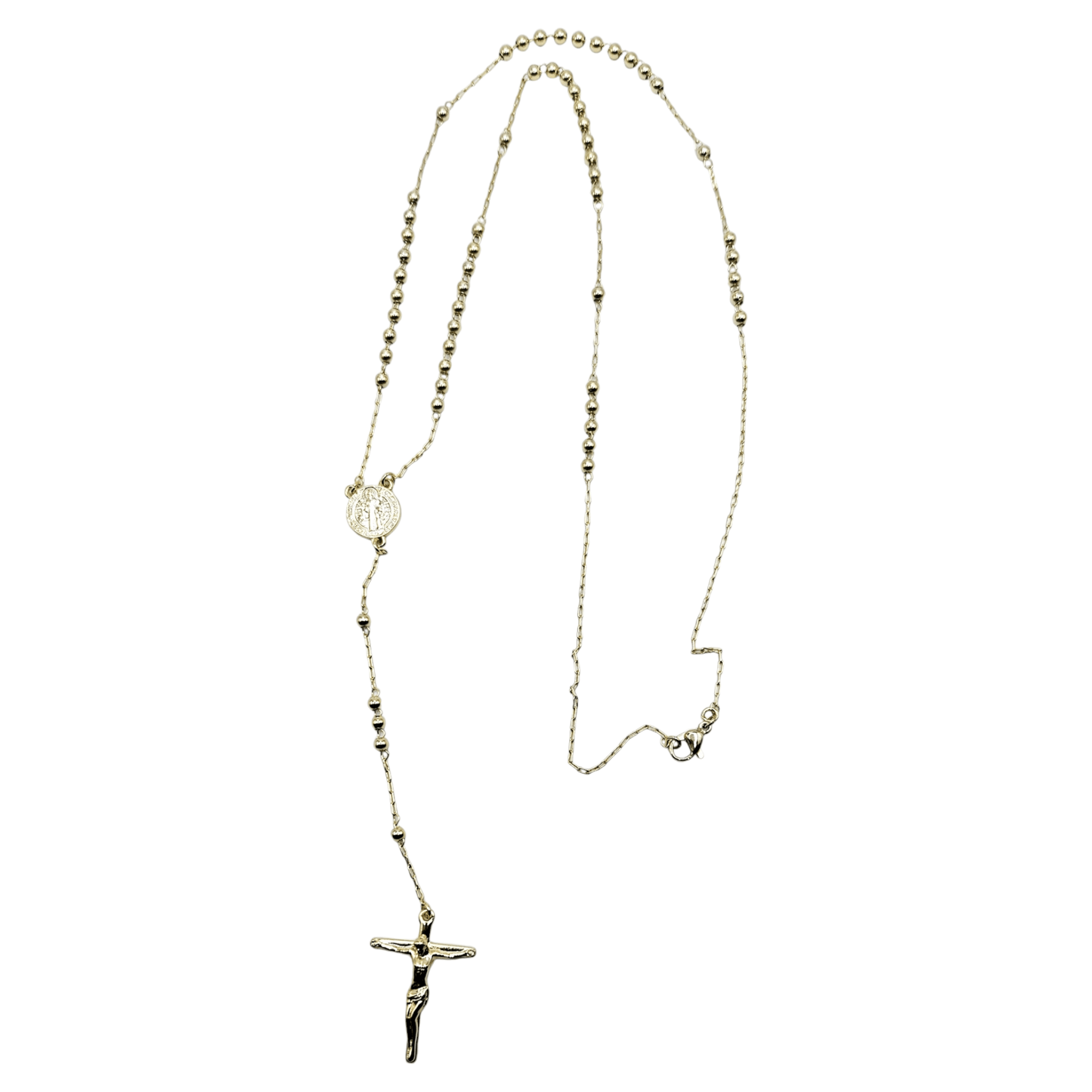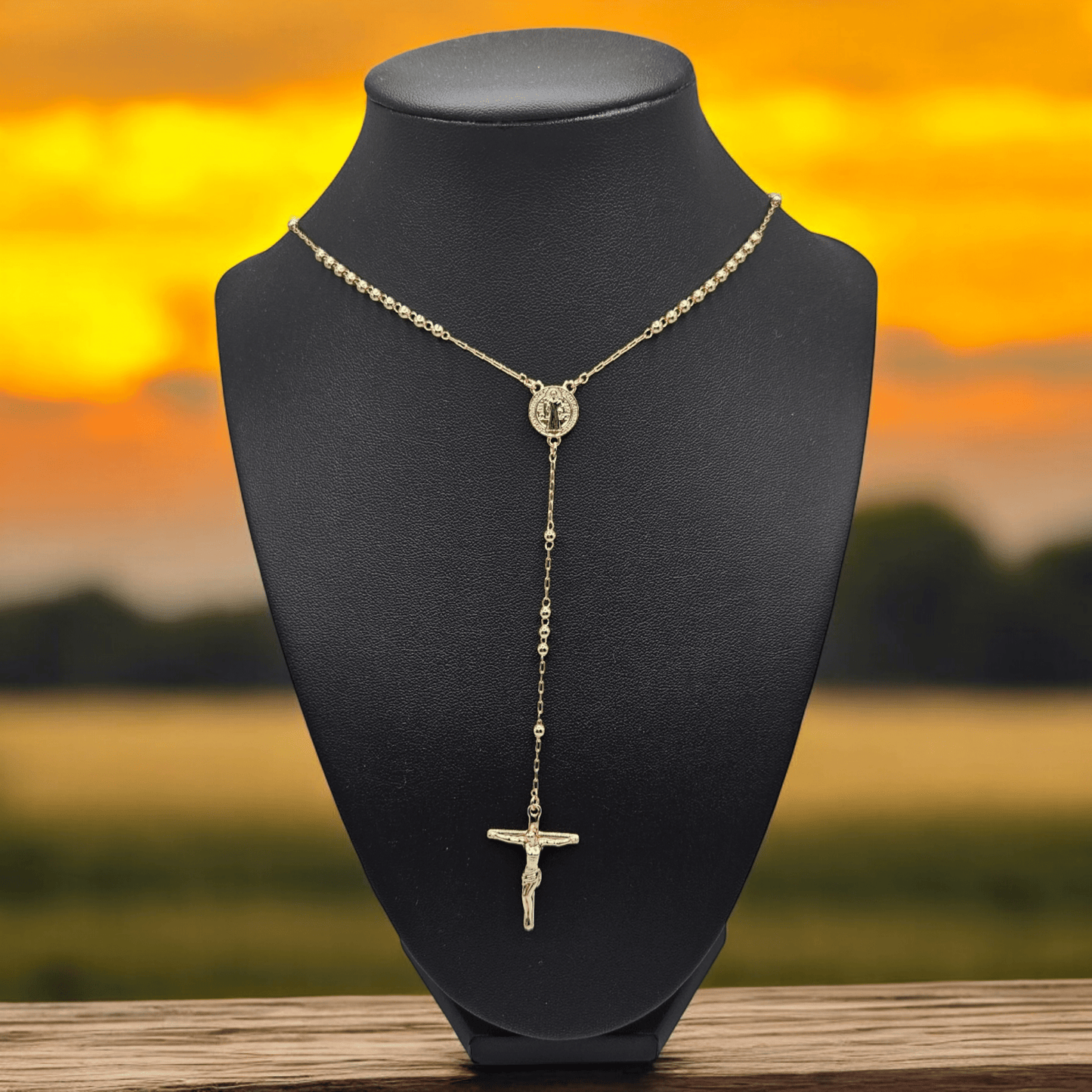 Collar Rosario con Cruz y Rosario de San Judas, chapado en oro de 14k, símbolo religioso, perfecto para Navidad y Pascua.