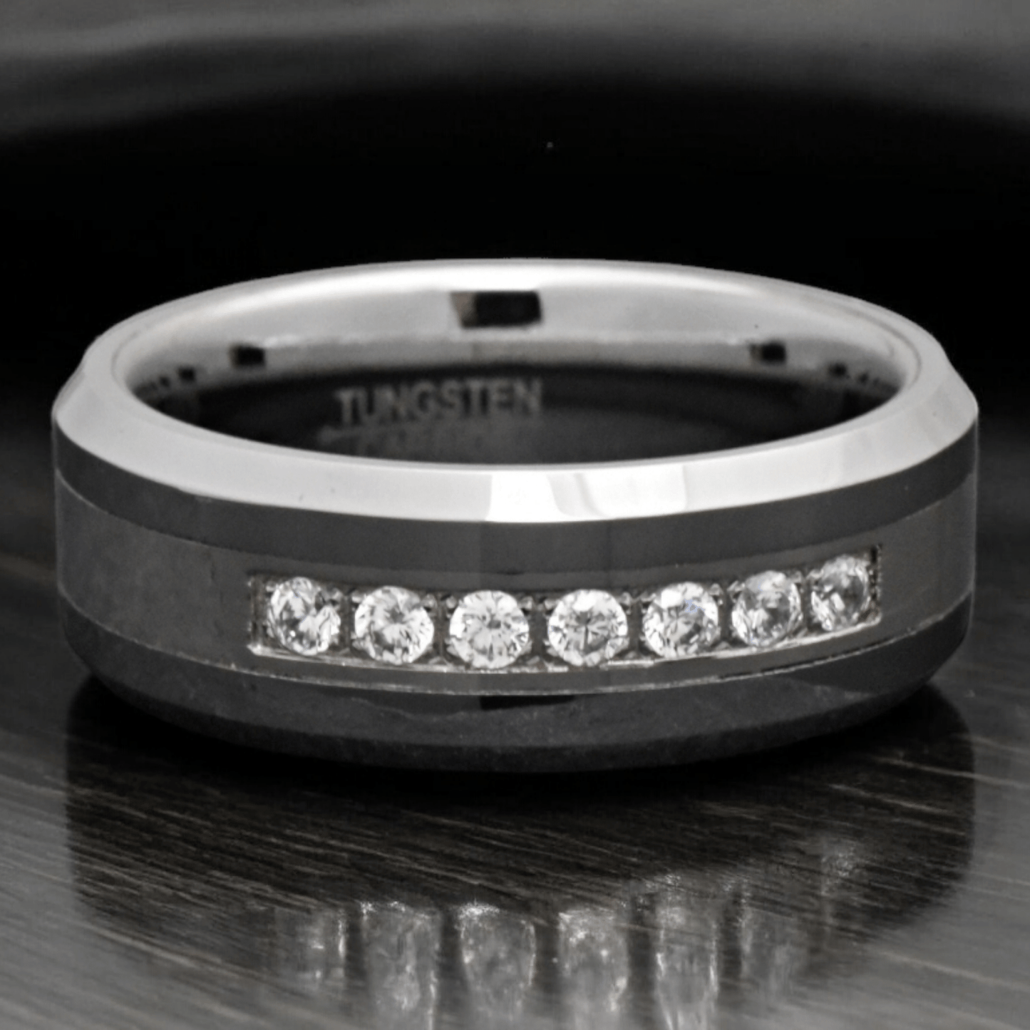 Anillo de carburo de tungsteno para hombre, plata y circonita blanca, 8 mm