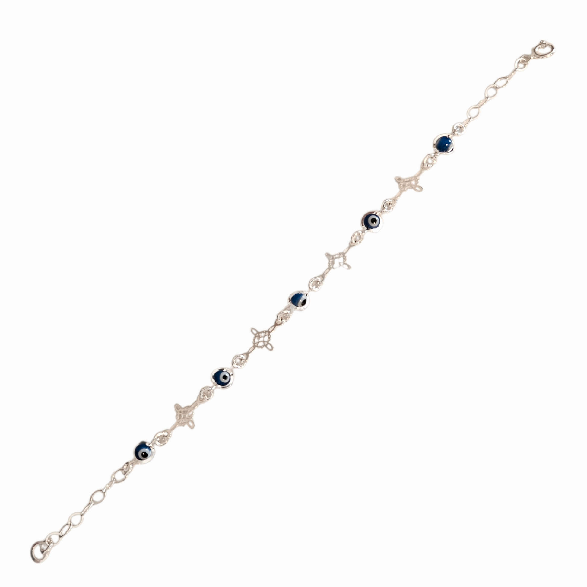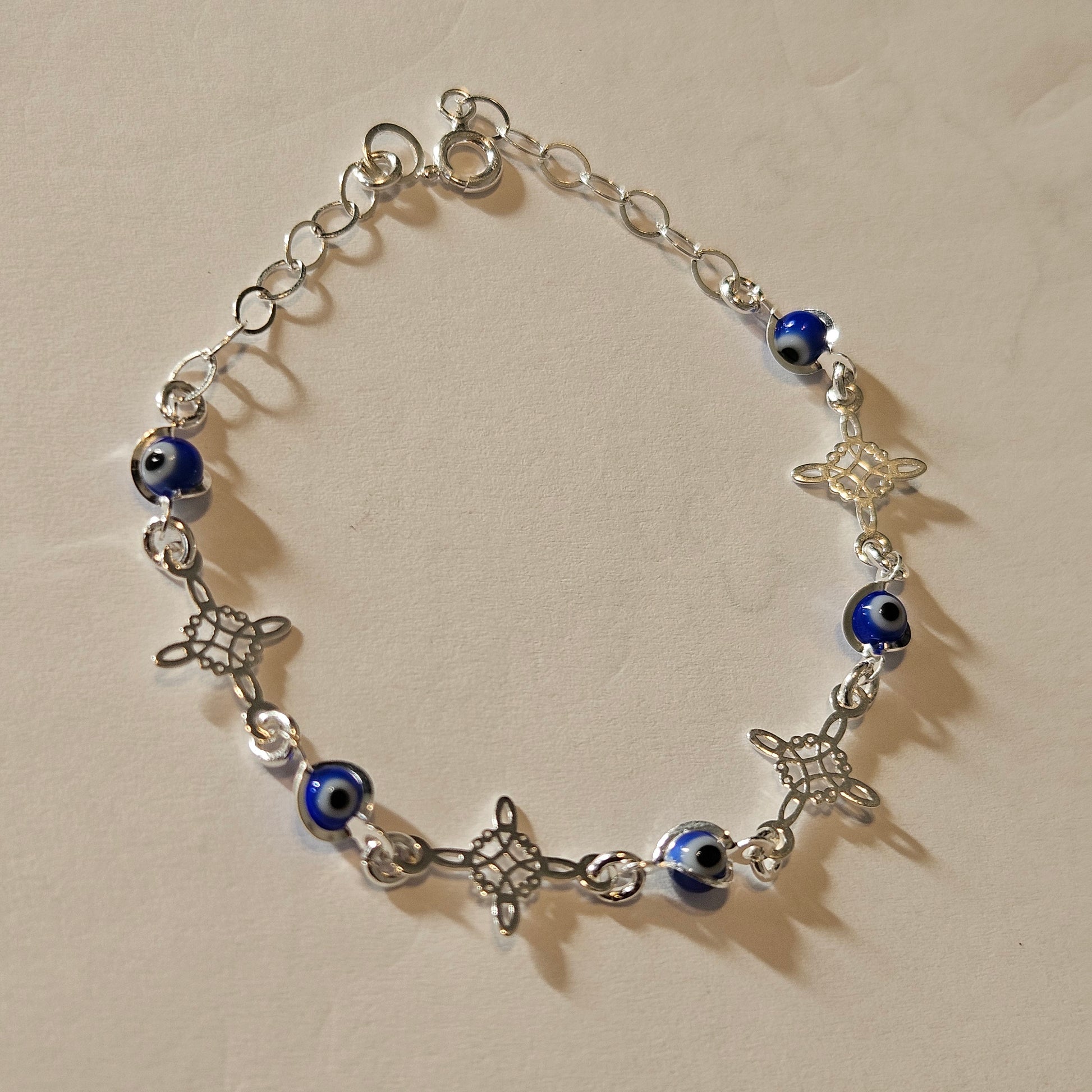 Blue Evil eye Bracelet Sterling Silver S925 with Witch's Knot Nudo de Bruja