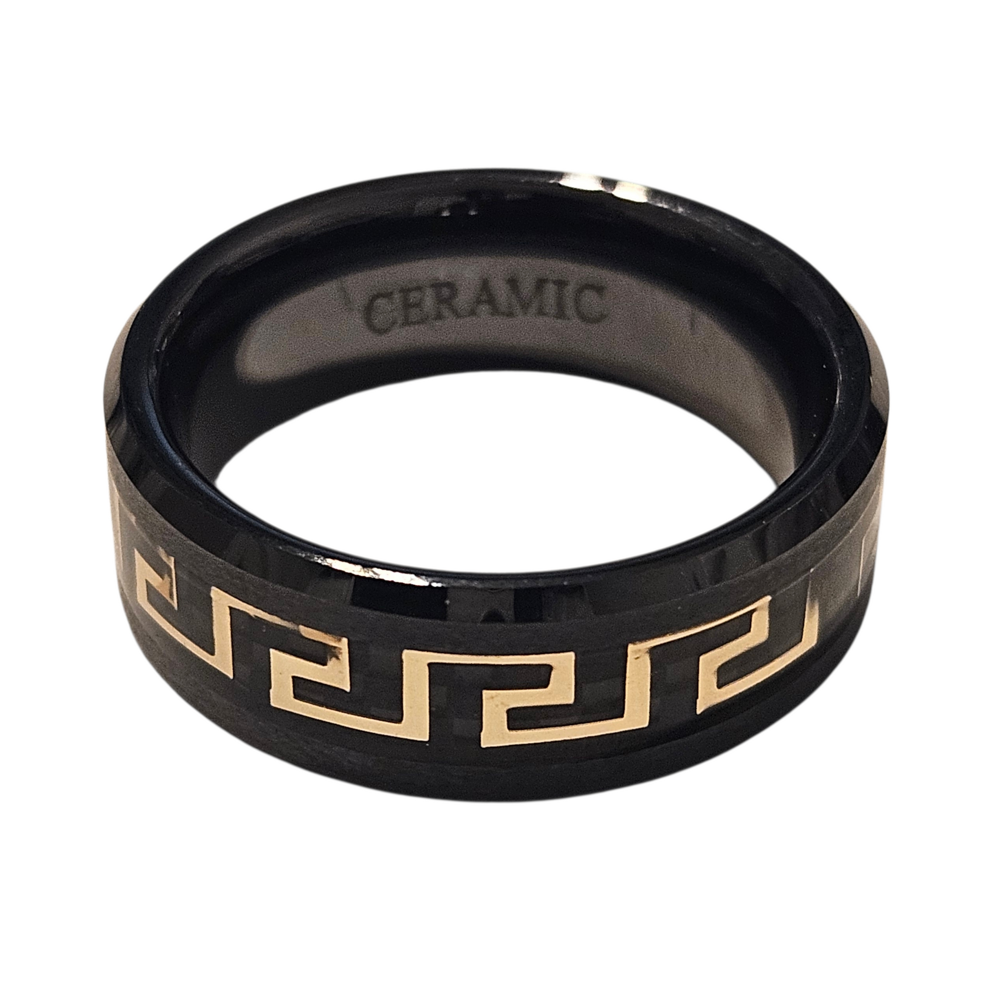 Fancy Black and Gold Ceramic Ring 8mm for Men and Women