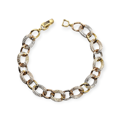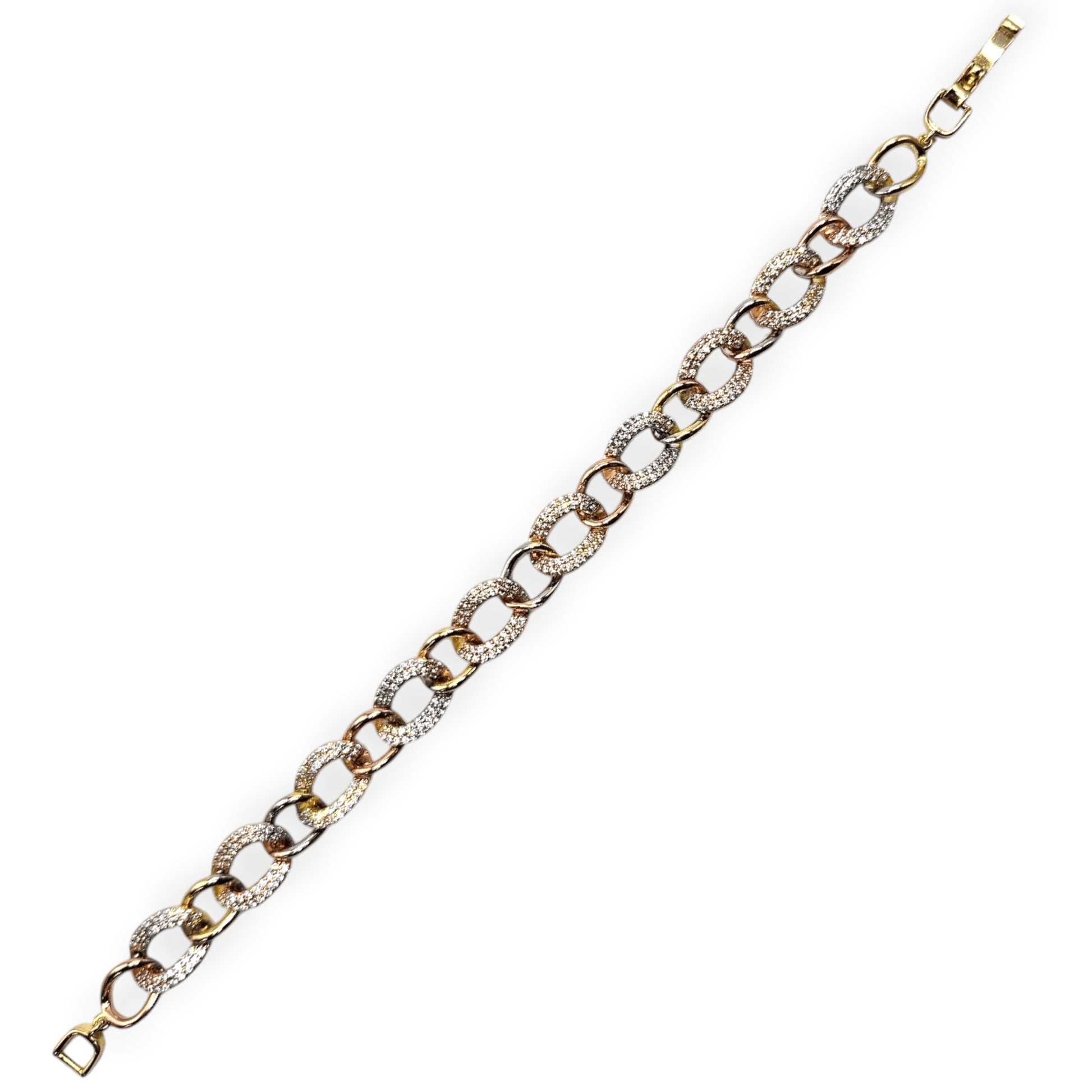 Fancy Link Fashion Tricolor Gold Plated Bracelet