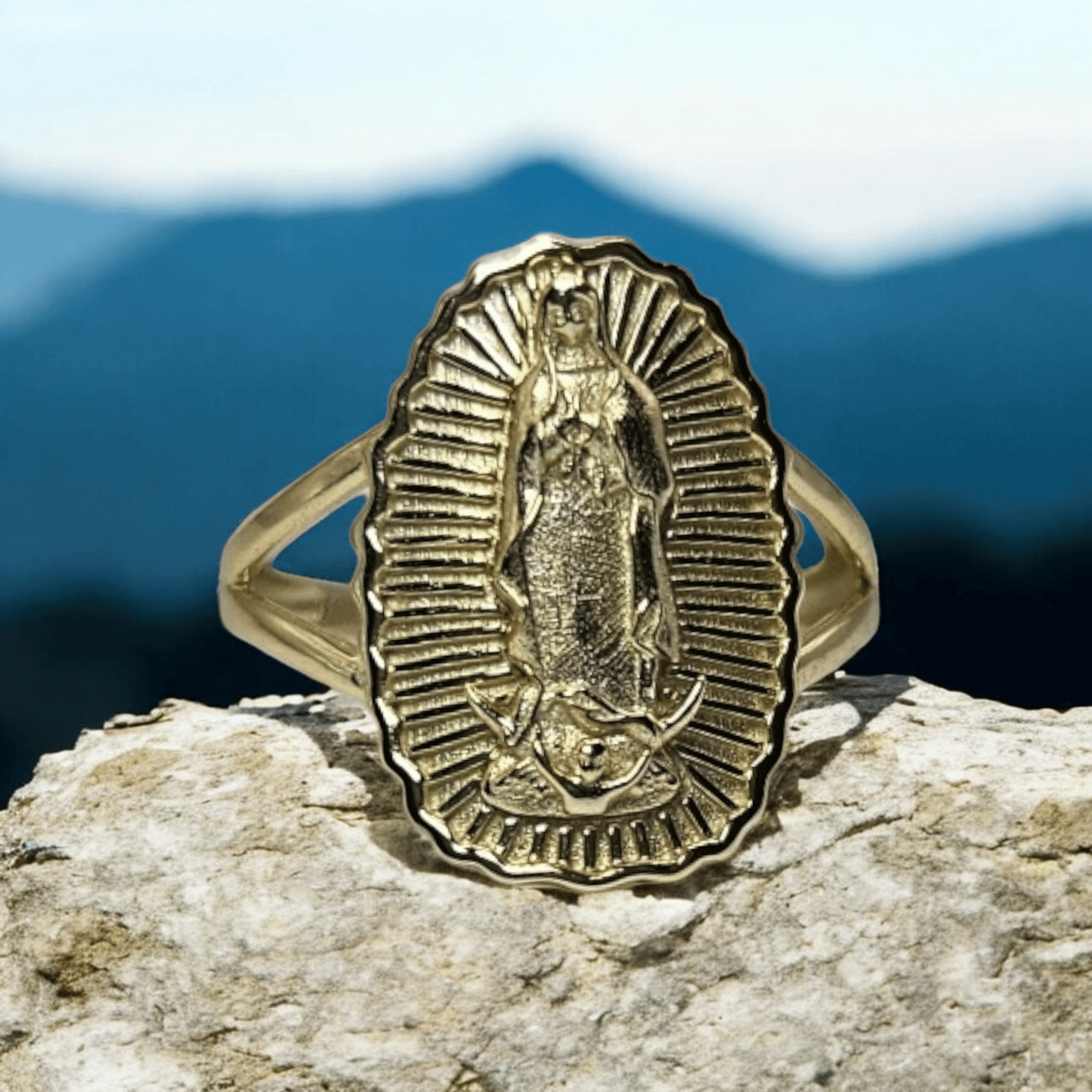 Gold 14k over Silver Virgen Maria Ring
