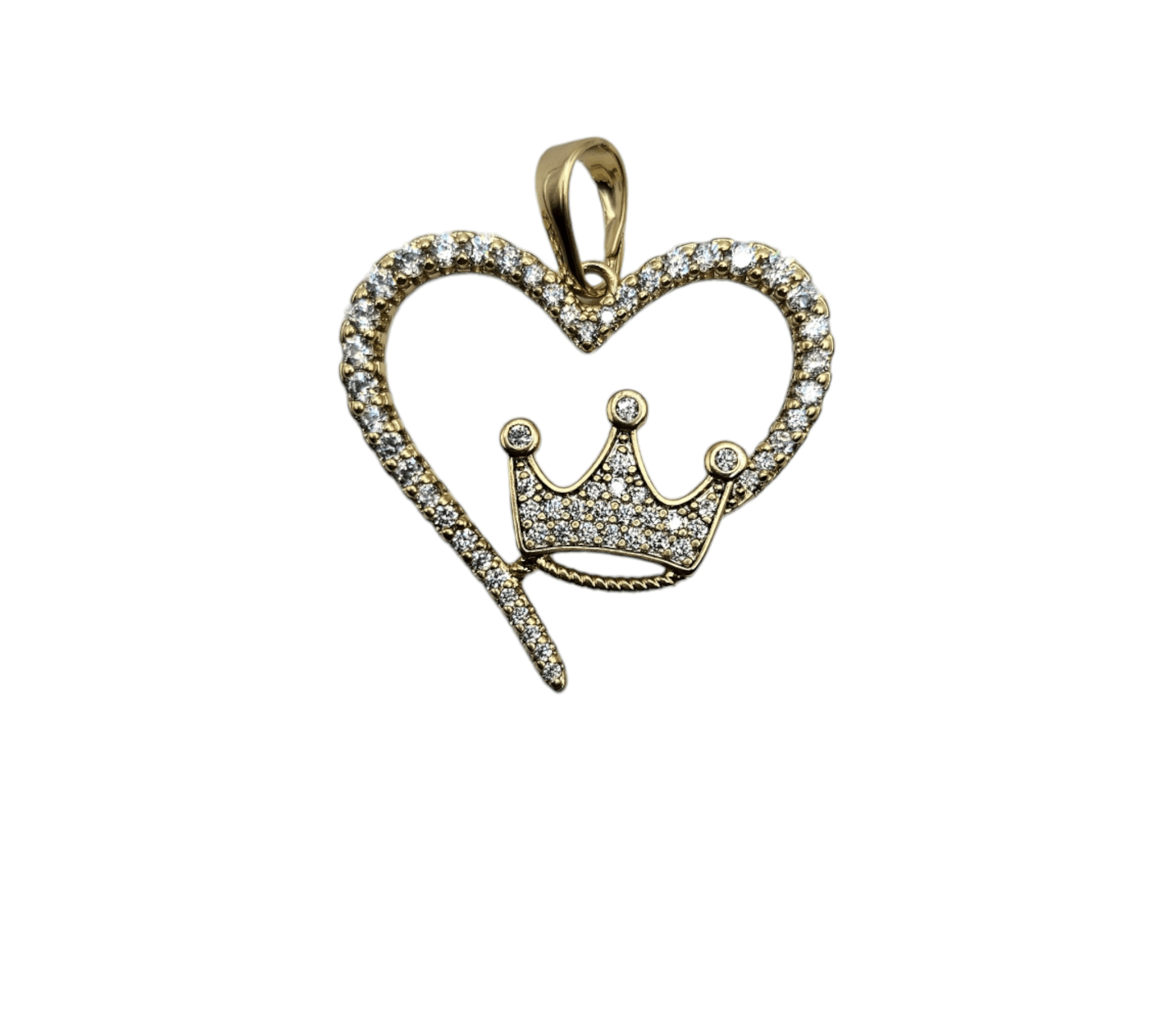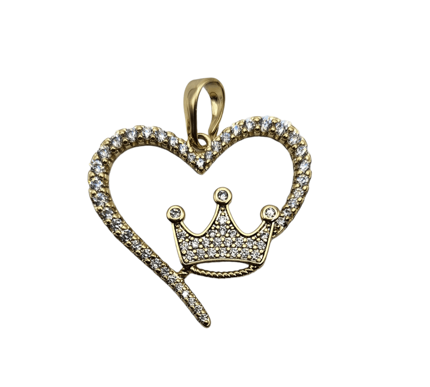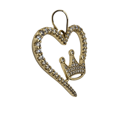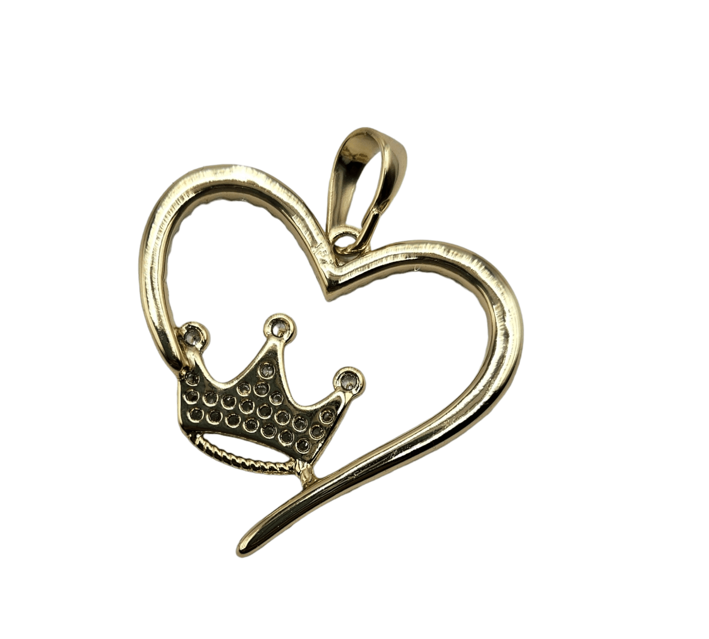This stunning pendant features a delicate design of intertwined heart and crown, crafted with 14K gold plating. Perfect for any occasion, this pendant exudes timeless elegance and is sure to capture hearts. Made with high-quality materials, this pendant shines with lasting beauty.