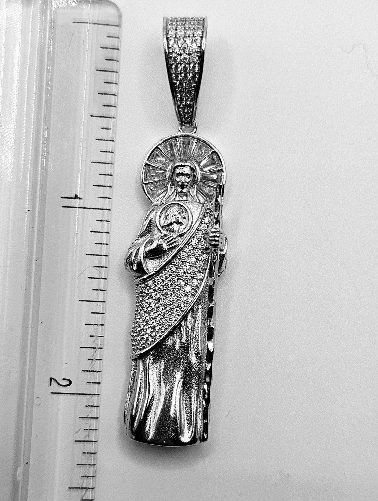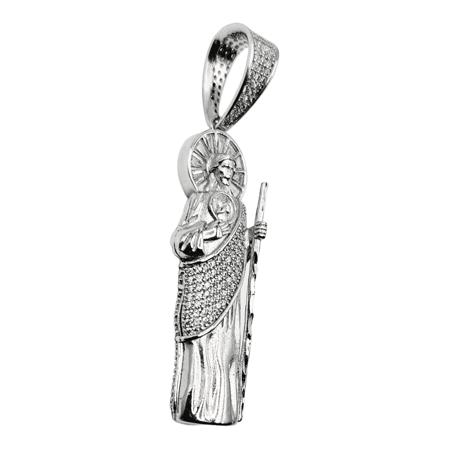 San Judas Pendant with Sparkling White Cubic Zirconia Stones