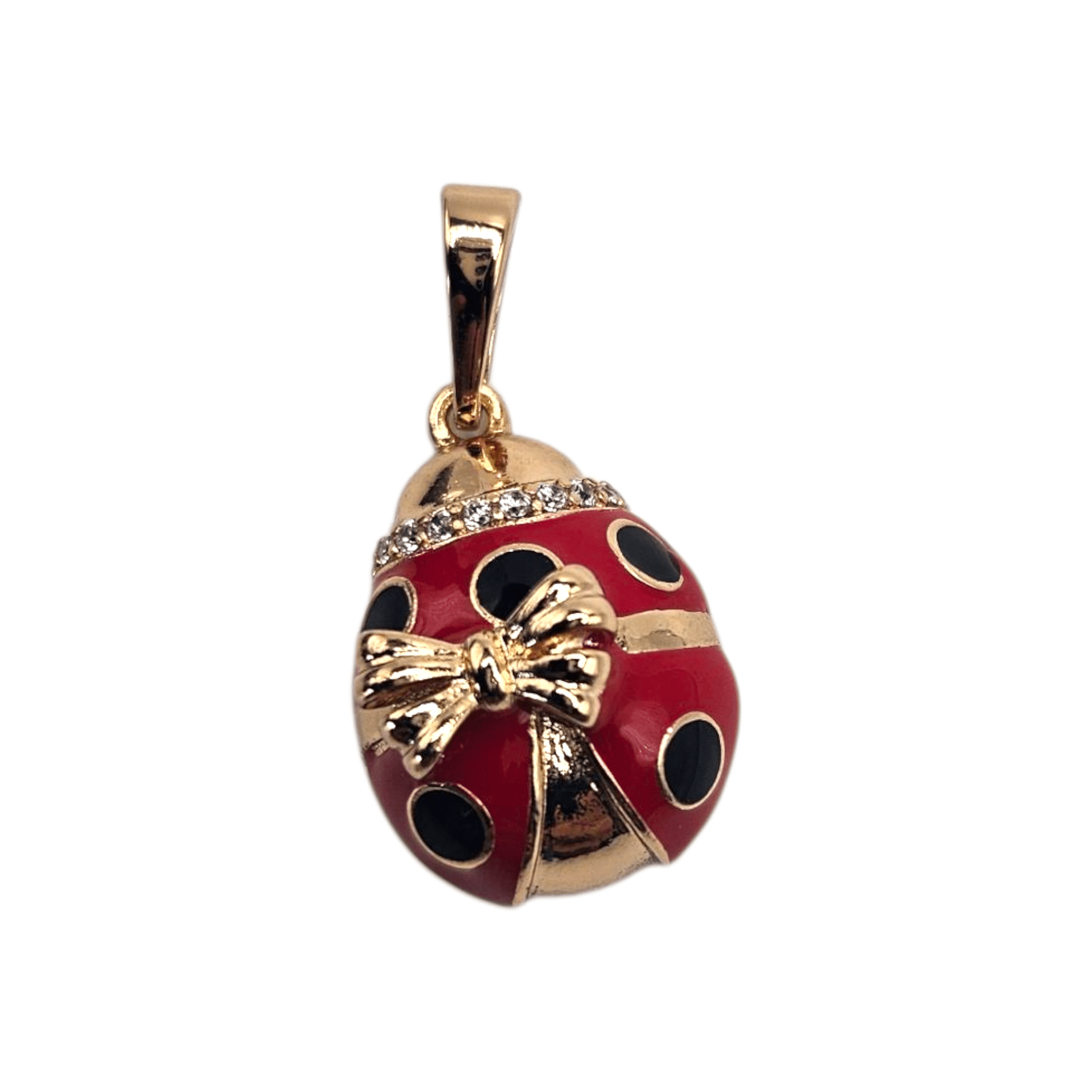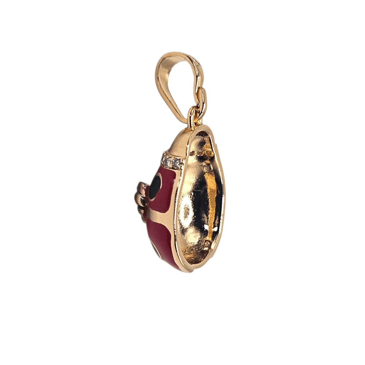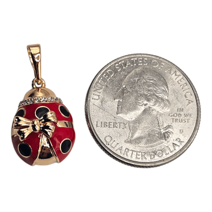 Red Lady Bug 18K Rose Gold Plated Pendant White CZ Stones