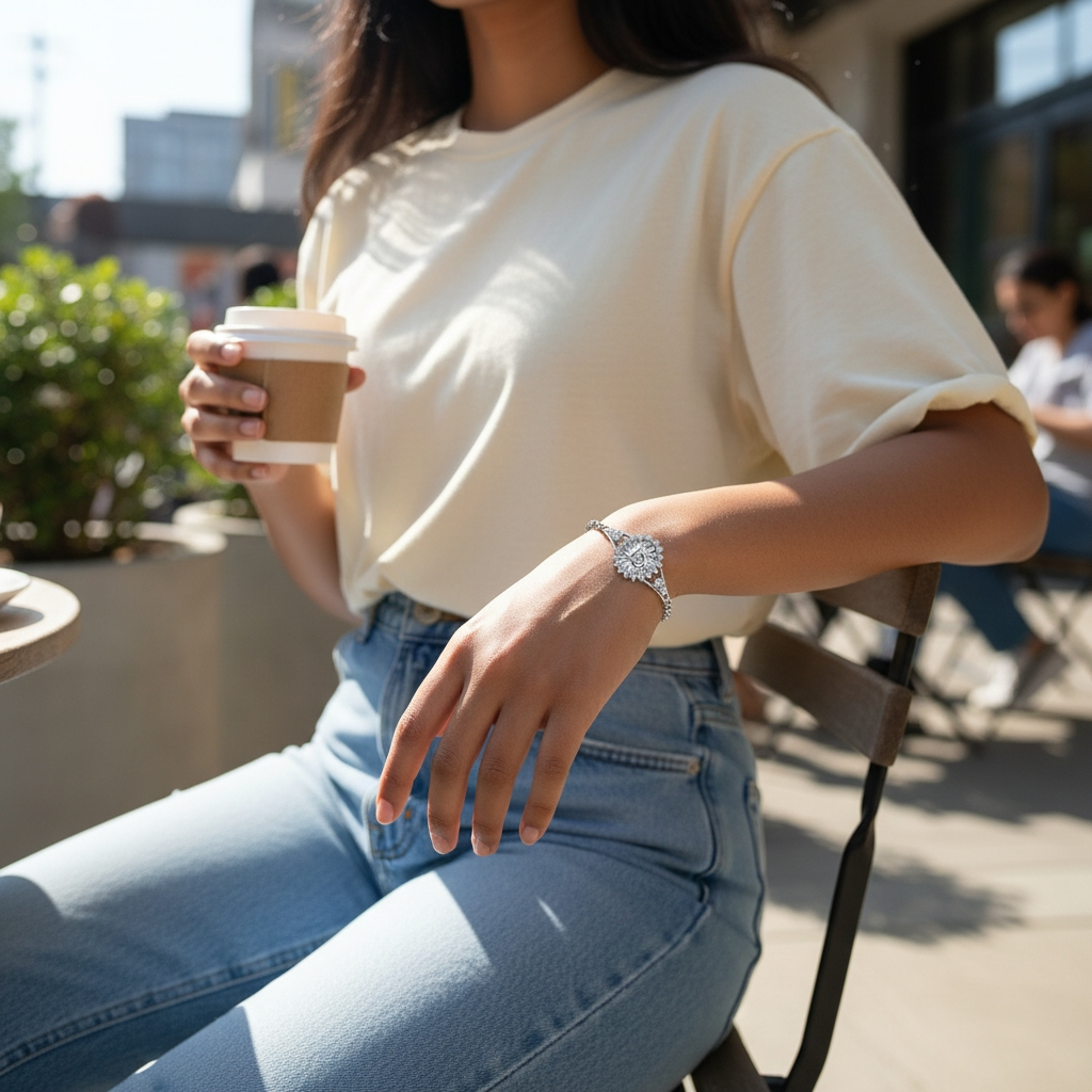 Celebrate your 15th birthday in style with our stunning silver bracelet. Made from 925 silver, it features a beautiful oval design and the number 15, adorned with sparkling cubic zirconia stones for a touch of elegance. Perfect for any quinceañera, this 7.5" long figaro chain bracelet is the perfect way to commemorate this special occasion.