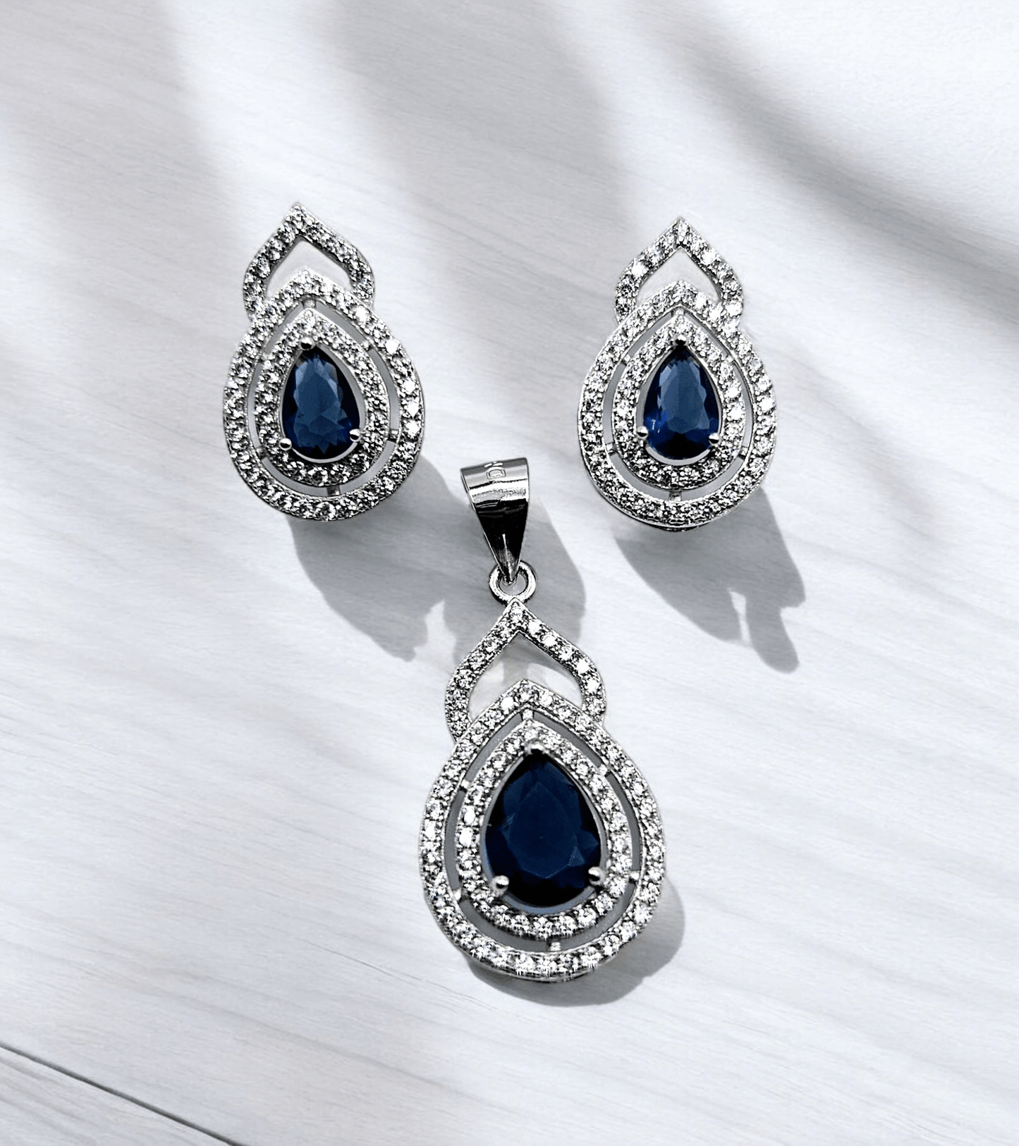 Silver 925 Royal Design Set with Saphire and White Cubic Zirconia Stones Earrings and Necklace Set. High Quality Silver with Rhodium for extra strength and brightness ✨️